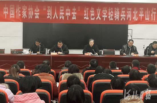 為學習貫徹習近平總書記給內蒙古自治區(qū)蘇尼特右旗烏蘭牧騎隊員們回信的重要指示精神,號召廣大文藝工作者努力做新時代“紅色文藝輕騎兵”,今天,由中國作協(xié)主辦,河北省作協(xié)協(xié)辦的“到人民中去”紅色文學輕騎兵河北行活動在平山縣舉辦。