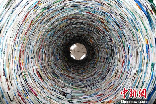 中新網(wǎng)西安1月22日電 (張梟 梅鐿瀧)西安一座用10余噸書籍搭建而成,高11米、直徑2.5米的書塔走紅網(wǎng)絡(luò)。設(shè)計者稱,該藝術(shù)品旨在喚起民眾對傳統(tǒng)閱讀的回歸,同時希望在校大學(xué)生不要困在書中,多增加實(shí)踐能力和創(chuàng)新創(chuàng)業(yè)的能力。