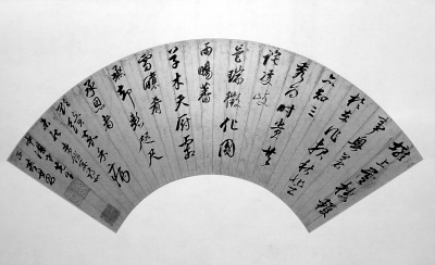 董其昌的《行草書七言律詩扇》,亮相于2014年9月在中國國家博物館舉辦的“小品大藝——明清扇面藝術(shù)展”。劉兆明攝 光明圖片/視覺中國
