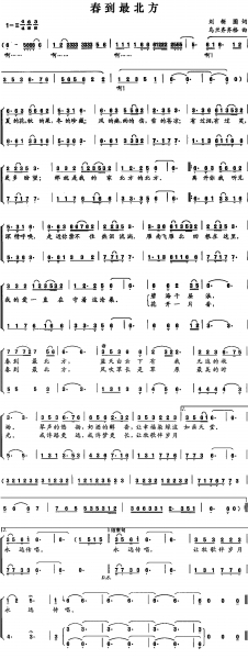 劉新圈曾以打油詩談創(chuàng)作心得,“歌詞選題最重要,新鮮角度離不了”。這首歌以“春到最北方”為主題,可以說在眾多寫內(nèi)蒙古大草原的歌曲中獲得了新的角度。內(nèi)蒙古大草原橫亙在中國的最北部。雖然中國領(lǐng)土最北端在黑龍江省,但占據(jù)北部疆土面積最大的是內(nèi)蒙古自治區(qū)。春天是從南方一點點來到北方的,等春天蔓延到祖國的最北方時,意味著已是祖國萬里江山處處春了。