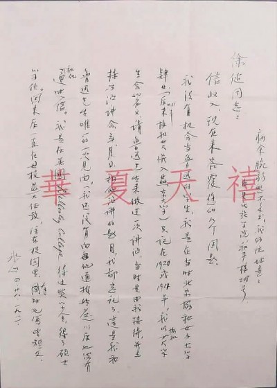 2017年12月6日 晴。數(shù)月前北京“華夏天禧·墨箋樓”在網(wǎng)上拍賣(mài)一通冰心親筆信札,信中回顧了她與魯迅的關(guān)系:徐健同志: