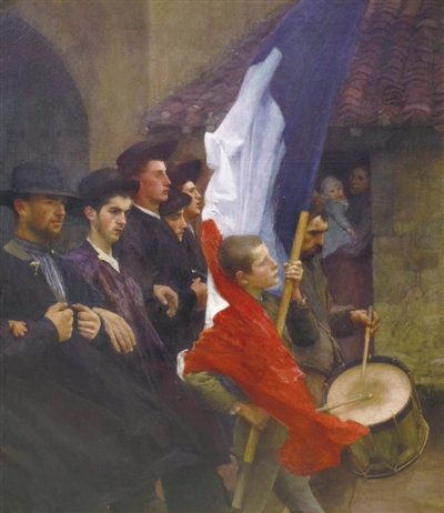 學(xué)院舉辦的沙龍展,也為18、19世紀(jì)法國(guó)藝術(shù)的繁榮做出很大貢獻(xiàn)。1737年起,學(xué)院每年在盧浮宮的“方形沙龍”大廳舉辦“皇家繪畫(huà)與雕塑學(xué)院沙龍展”,簡(jiǎn)稱“沙龍展”。沙龍?bào)w制為藝術(shù)家提供了新的欣賞者和贊助者,使藝術(shù)界更活躍、多元,也形成新的藝術(shù)取向,影響著藝術(shù)的發(fā)展。展覽中觀眾將欣賞到在沙龍中獲得聲譽(yù)的重要作品,包括安格爾的《朱庇特與忒提斯》、歐仁·德拉克洛瓦的《弗朗索瓦·拉伯雷像》、卡米耶·柯羅的《意大利風(fēng)光》,還有帕斯卡·達(dá)仰—布弗萊的《應(yīng)征入伍者》(見(jiàn)圖)和其他一些在全世界享有盛譽(yù)的藝術(shù)作品。這些作品得以保存,得益于國(guó)家通過(guò)征訂、購(gòu)買沙龍展作品給予藝術(shù)家們的鼓勵(lì)。購(gòu)買和征訂的作品收藏于法國(guó)國(guó)家造型藝術(shù)中心。