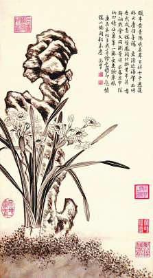 明清時(shí)期,“歲朝清供圖”也成為文人鐘愛(ài)的題材,明代的陳洪綬,清初的八大山人,揚(yáng)州八怪中的李鱔,清末海派名家趙之謙、任伯年、吳昌碩等都有此類(lèi)作品傳世。對(duì)于這一現(xiàn)象,美學(xué)家陳健毛講的最為透徹:“歲朝圖”的流行可以看作文人畫(huà)世俗化的縮影,其中很多作品雖表現(xiàn)文人擅長(zhǎng)的梅蘭竹菊,但其意義往往脫離了傳統(tǒng)的品格氣節(jié)象征,而被賦予平安如意、長(zhǎng)壽吉祥等寓意,以迎合市場(chǎng)需求。吳昌碩作于83歲的一幅《歲朝清供圖》,所畫(huà)牡丹、水仙、石頭皆為歲朝圖中常見(jiàn)之物,然其以書(shū)入畫(huà),以寫(xiě)代工,牡丹的莖干、石頭的輪廓皆顯示出其老到的書(shū)法功底。至于設(shè)色,學(xué)的乃是清嘉道年間花卉名家張孟皋,牡丹艷而不俗,水仙雅而不孤。雖然只有兩種花卉,但整幅畫(huà)構(gòu)圖繁密,生機(jī)勃勃,與宮廷歲朝圖的富貴細(xì)膩又大不一樣。