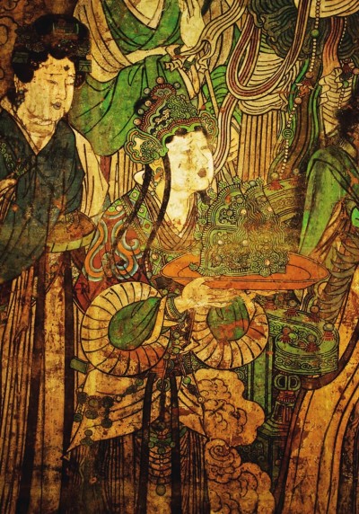 壁畫是人的精神世界的“物化”形態(tài),圖式亦不過是以情為橋,將作畫者對于生命精神的感知,絲絲入扣地輸送給后世的人們;他們仿佛把熱氣騰騰的情感植入一面面冰冷的墻土中,令其有了血肉、呼吸、脈動以及蓬勃的生氣,以至于哪怕千年之后,賞畫者的心也能穿透厚厚的墻壁以及歷史煙云,與作畫者對話、交織與共鳴。壁畫要呈現(xiàn)的,“不僅是畫,而應是一切”,畫里的時空的綿延或頓挫,無不意蘊著畫工的心智和情感,這導致畫中的內容由具體的物象,發(fā)展到所思所想,最終升華為一種精神的抽象。壁畫總是用“符號”構建、編碼著不同于創(chuàng)作者生活的世界——符號世界,這種“符號”又最終架構出嚴肅、莊重、神秘、歡快等“意義”,比如,宗教畫以佛的宏大與包容、俗界的色相之美感化眾生,使其獲得審美滿足時,心靈也得以升華。符號也好,色彩也罷,一切元素都在死的畫面中活過來,隱露出神秘又崇高的精神意味。由于抽象、晦澀的經(jīng)典義理被形象化,加之洞窟的朦朧光線和搖曳燈光也參與到這場“造境”的運動中,信眾于半虛半實的幻覺里,感受佛法的莊嚴、神圣和溫馨。到了當下,藝術脫離宗教,獲得更加自由和廣闊的空間,想像力終究從神性、法性、天堂、凈土的云煙中,恢復原本所依據(jù)的人性、社會性、時代性、物質性,現(xiàn)代人最高的心靈需要得到充分的滿足。