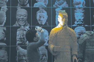 省博物館工作人員正在點(diǎn)交文物秦始皇兵馬俑