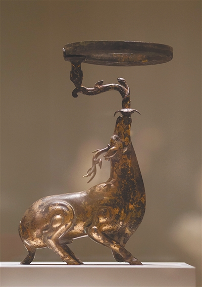 鎏金銅鹿燈