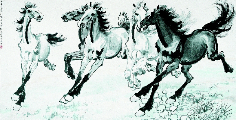 和古代相比,當(dāng)代畫(huà)家想要畫(huà)好中國(guó)畫(huà),更需一個(gè)不斷訓(xùn)練造型能力的過(guò)程,若想完全擺脫造型限制而追尋所謂“用書(shū)法化的線(xiàn)條去表現(xiàn)情感”,如同水中撈月,除了模仿古代簡(jiǎn)筆文人畫(huà)之外,恐怕難有其他建樹(shù)。徐悲鴻憑借十分嫻熟的造型能力和建立在“惟妙惟肖”基礎(chǔ)上的“新筆墨”,成為解決中國(guó)寫(xiě)意筆墨與寫(xiě)實(shí)造型之間矛盾的重要藝術(shù)家。往昔諸多偉大藝術(shù)家的成功表明,創(chuàng)造性源自對(duì)于限制的超越。必要的限制,不但能激發(fā)創(chuàng)造力,而且甚至成為衡量創(chuàng)造性的標(biāo)尺。對(duì)于真正勇于探索的藝術(shù)家來(lái)說(shuō),限制是創(chuàng)新的基點(diǎn)。正是打下了中西傳統(tǒng)繪畫(huà)堅(jiān)實(shí)的基本功,長(zhǎng)期踐行以西融中,徐悲鴻獲得了對(duì)于寫(xiě)實(shí)造型的精深把握,超越了復(fù)雜寫(xiě)實(shí)造型對(duì)于許多中國(guó)畫(huà)家的限制,使中國(guó)畫(huà)筆墨意趣得到了劃時(shí)代的突破。在他的各種動(dòng)物畫(huà)(尤其是馬)中,讀者尤能感悟到這種對(duì)于造型限制的筆墨突破,這是前無(wú)古人的,是一種在寫(xiě)實(shí)基礎(chǔ)上進(jìn)入自由境界后的“徐悲鴻筆墨”。