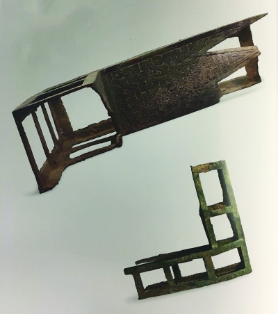 這一單元首先展示的是一批鑄鐵農(nóng)具,包括各地發(fā)現(xiàn)的鐵鍤、鐵鉞、鐵斧等及鐵范。研究顯示,春秋戰(zhàn)國時期先后出現(xiàn)了生鐵冶鑄、鑄鐵柔化處理和世界上最早的煉鋼與淬火等技術(shù),使一批人以冶鐵致富。鑄鐵農(nóng)具逐漸取代青銅農(nóng)具,成為生產(chǎn)力發(fā)展的重要標(biāo)志。其中,兩件鐵范——“‘右廩’鐵斧范”、“‘右廩’鐵鑊范”吸引住了記者的目光。鐵范,即是用鐵水澆鑄鐵器時用的鐵質(zhì)模具,可以批量生產(chǎn)鐵制工具。據(jù)相關(guān)資料,這批鐵范1953年出土于河北興隆村付將溝,共計87件,有“鋤范”、“钁范”、“斧范”、“鑿范”等。這些戰(zhàn)國鐵金屬鑄范上,多鑄有“右廩”二字,專家推測“右廩”是燕國管理官營手工業(yè)作坊的機(jī)構(gòu)。