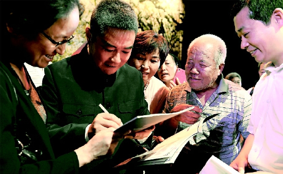 張建國(左二)演出后為觀眾們簽名,進(jìn)行交流