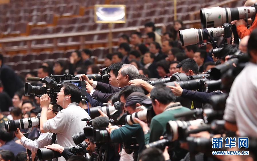 3月14日,全國政協(xié)十三屆一次會議在北京人民大會堂舉行第四次全體會議,選舉政協(xié)第十三屆全國委員會主席、副主席、秘書長和常務委員。這是記者在會場采訪。新華社記者 張玉薇 攝