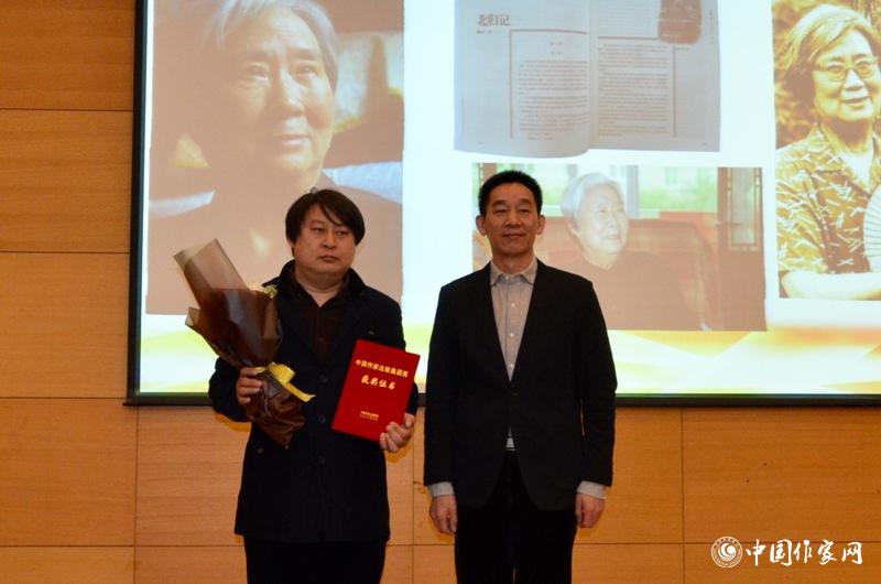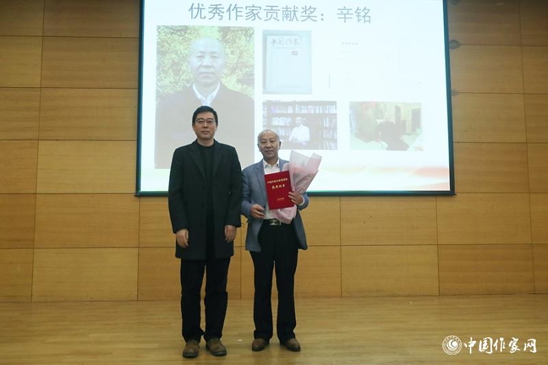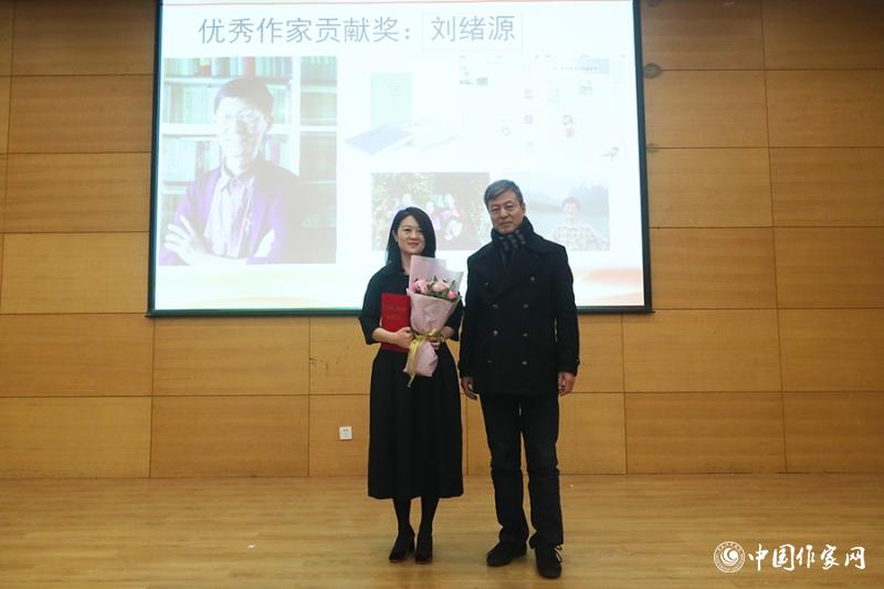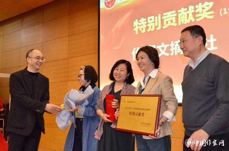 吳義勤為榮獲特別貢獻(xiàn)獎(jiǎng)的作家文摘報(bào)社頒獎(jiǎng)