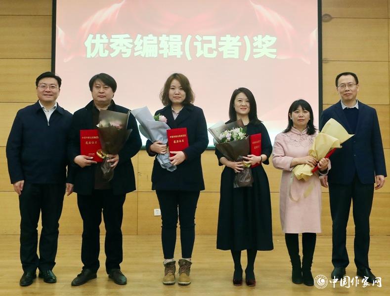 徐忠志、黃賓堂為優(yōu)秀編輯(記者)趙志方、陳沖、閻瑜、興安頒獎(jiǎng)