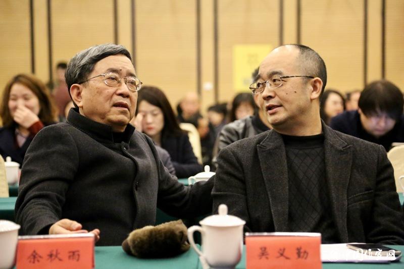 吳義勤為獲獎(jiǎng)作家余秋雨頒獎(jiǎng)