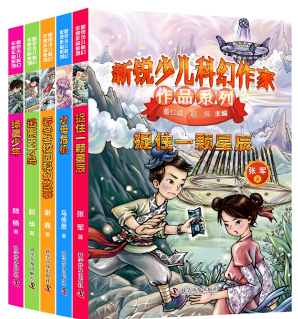 由我國(guó)著名科普作家、全球華語(yǔ)科幻星云獎(jiǎng)創(chuàng)始人之一董仁威先生掛帥主編的中國(guó)“新銳少兒科幻作家作品系列”第一輯,在楊虛杰、王衛(wèi)英等朋友大力支持下,近日由科學(xué)普及出版社正式出版,這是“振興中國(guó)少兒科幻工程”系列計(jì)劃中的一項(xiàng)成果。這套叢書(shū)包括:中國(guó)兒童文學(xué)最高獎(jiǎng)——全國(guó)優(yōu)秀兒童文學(xué)獎(jiǎng)得主趙華著的《逃離天才島》,全球華語(yǔ)科幻星云獎(jiǎng)金獎(jiǎng)和“大白鯨世界杯”原創(chuàng)幻想兒童文學(xué)獎(jiǎng)最高獎(jiǎng)“鉆石鯨獎(jiǎng)”得主、中國(guó)重文學(xué)流派少兒科幻領(lǐng)軍人物馬傳思著的《水母危機(jī)》,全球華語(yǔ)科幻星云獎(jiǎng)得主、中國(guó)少兒科幻三劍客之一陸楊著的《綠星少年》,“大白鯨世界杯”原創(chuàng)幻想兒童文學(xué)獎(jiǎng)得主張軍(小高鬼)著的《捉住一顆星辰》,中國(guó)原創(chuàng)少兒偵探小說(shuō)領(lǐng)軍人物謝鑫著的《喬冬冬校園科幻故事》。《科幻世界》副總編、主編、著名科幻出版人姚海軍贊道,這是“一套呈現(xiàn)少兒科幻更多風(fēng)貌的叢書(shū),預(yù)示著少兒科幻正在迎來(lái)發(fā)展的熱潮”。著名科幻作家、中國(guó)科普作家協(xié)會(huì)副理事長(zhǎng)王晉康推薦道:“少年是最富有想象力的群體,這套少兒科幻系列叢書(shū)充滿了智慧的想象,在科幻的基礎(chǔ)上,包含了偵探、懸疑、歷史探秘、校園生活等多種題材,一定能獲得小朋友們的喜愛(ài)?!?/p>