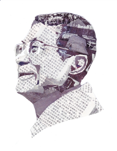 今年40歲的梁霄飛,國畫專業(yè)出身,投身媒體行業(yè)15年,曾任某雜志總編,現(xiàn)居昌平區(qū)興壽鎮(zhèn)下苑村,過著怡然自得的鄉(xiāng)村生活。梁霄飛關(guān)于報(bào)紙拼貼畫的靈感,來自他和朋友前一陣辦的一個(gè)小型畫展。畫展前,有朋友建議,將參展畫家的肖像繪在特制的明信片上。但嘗試過水彩、丙烯綜合材料之后,梁霄飛覺得不太滿意,開始尋找不同的表達(dá)方式。