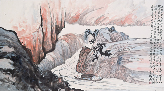 3月16日,由中國美術(shù)館、香港中文大學(xué)文物館聯(lián)合主辦的“自我有乾坤——呂壽琨與早期水墨運動”在中國美術(shù)館舉行,展出了呂壽琨上世紀(jì)40年代末至70年代初創(chuàng)作的最具代表性的51件作品,全面而生動地呈現(xiàn)出呂壽琨的藝術(shù)創(chuàng)作脈絡(luò),同時折射出香港水墨藝術(shù)運動發(fā)展的一個側(cè)面。展品中不乏許多傳承傳統(tǒng)筆墨的山水畫作品,包括臨摹古代大師的經(jīng)典之作。借由這些作品,藝術(shù)家雄渾的筆墨功夫與深邃的傳統(tǒng)文化底蘊躍然紙上。展覽將持續(xù)至4月14日。 圖為《急流逆舟》 (小 辰)