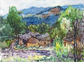 松陽(yáng)縣楊家堂村(水彩) 駱獻(xiàn)躍
