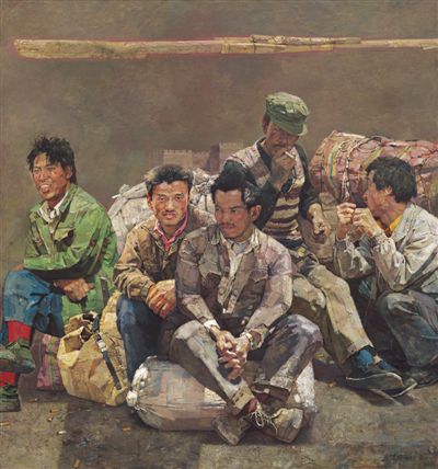 上世紀(jì)90年代中期,忻東旺以一個(gè)藝術(shù)家應(yīng)有的敏感把視點(diǎn)鎖定在“民工潮”這個(gè)大變動(dòng)的社會(huì)主題上。當(dāng)他看到越來越多的農(nóng)民涌入城市,他意識(shí)到,“社會(huì)變革的因素已悄然滲入每一位農(nóng)民的精神意識(shí)中,雖然貧瘠的土地難以改變他們的命運(yùn),但時(shí)代變革的步伐卻已震顫了涌動(dòng)的大地”。畫家之所以一再選擇這一主題,誠如他所說,“是因?yàn)樵谖铱磥磉@一社會(huì)景觀是極具時(shí)代表情的,而藝術(shù)作品的藝術(shù)魅力和價(jià)值除了繪畫本身的因素之外,更是應(yīng)該承載反映時(shí)代和社會(huì)批判的責(zé)任”。