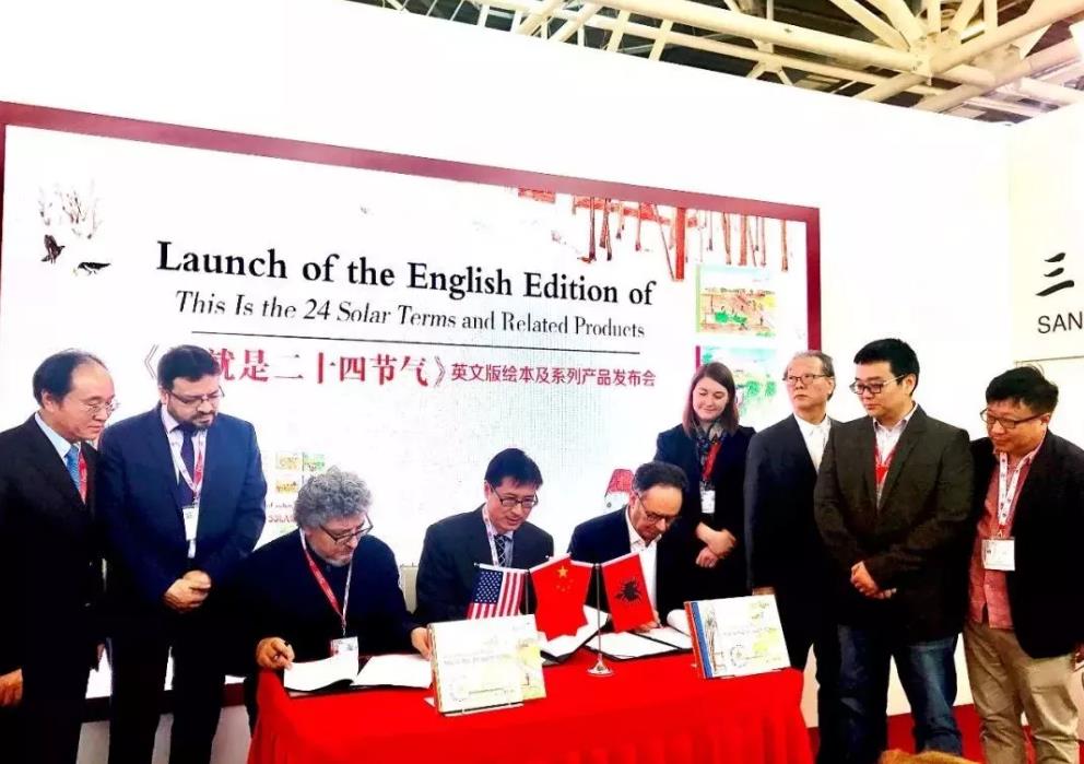 來(lái)自國(guó)內(nèi)外的多家文化出版機(jī)構(gòu)應(yīng)邀出席活動(dòng),海豚出版社與阿爾巴尼亞知識(shí)出版社、美國(guó)天馬出版社現(xiàn)場(chǎng)簽署了《這就是二十四節(jié)氣》阿爾巴尼亞文版、英文版版權(quán)協(xié)議,并與德國(guó)布拉克洛出版社、尼泊爾現(xiàn)時(shí)出版社達(dá)成《這就是二十四節(jié)氣》海外版權(quán)合作意向。