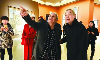 劉勃舒興致昂揚,更令他開心的是和徐悲鴻先生之子、中國人民大學(xué)徐悲鴻藝術(shù)研究院院長徐慶平的重逢,那一刻,二人緊緊相擁、十分動情。他們漫步在一幅幅作品前,認(rèn)真仔細(xì)地觀摩著、交談著,還時不時向周圍的人分享他的觀后感。因身體不大好,劉勃舒近來很少參加公眾活動。何韻蘭擔(dān)心他的身體吃不消,想要攙扶他,叮囑他走慢一點。劉勃舒卻仿佛全然忘記了自己已經(jīng)年逾八旬。