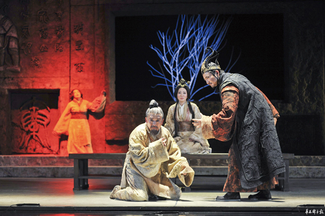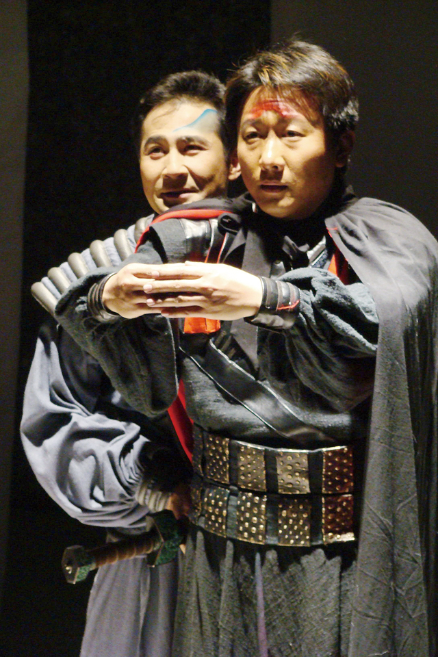 王曉鷹沒(méi)有滿足于這一種藝術(shù)領(lǐng)域里的“跨界”,他得隴望蜀地矚目著另一種“跨界”——跨文化。當(dāng)今的各國(guó)民族戲劇,越來(lái)越頻繁地活動(dòng)在國(guó)際文化的交流格局中,為什么交流,拿什么交流,在國(guó)際文化活動(dòng)中就凸顯出來(lái)。在這樣的背景下,王曉鷹充滿文化自信地提出了戲劇演出創(chuàng)造中的“中國(guó)意象現(xiàn)代表達(dá)”,是對(duì)自己的美學(xué)創(chuàng)造的一個(gè)新要求。他自己回溯藝術(shù)生涯,認(rèn)為早期的《荒原與人》《霸王歌行》,近期的《伏生》《杜甫》《大清相國(guó)》《蘭陵王》等作品中就已經(jīng)越來(lái)越明確地向這方面努力。舞臺(tái)意象中濃郁的中國(guó)傳統(tǒng)文化、傳統(tǒng)藝術(shù)的意味神韻,演出形態(tài)中透著現(xiàn)代意識(shí)現(xiàn)代方式的色彩語(yǔ)匯,就是文化上的民族個(gè)性與手段上的現(xiàn)代意識(shí)的融合。歸根到底,王曉鷹正在著手努力的,是中國(guó)話劇表達(dá)的民族性與現(xiàn)代性相同一、相統(tǒng)一的世紀(jì)性、世界性難題。