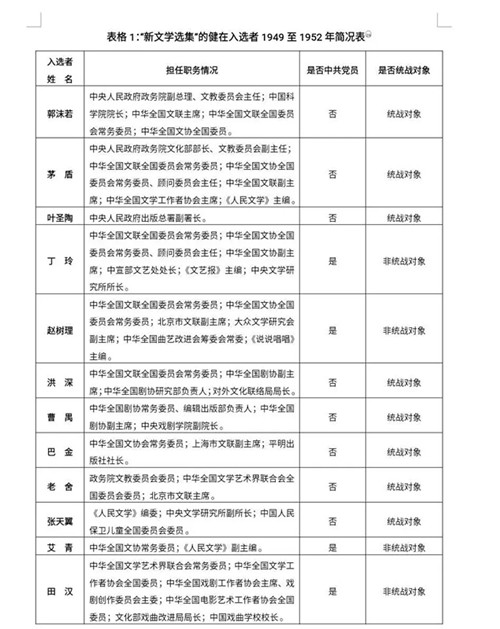 我們看看這些最終入選“新文學(xué)選集”的健在作家名單,并微觀考察其基本的政治傾向及新政權(quán)對他們的“態(tài)度”,統(tǒng)計情況如下: