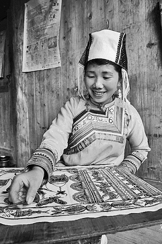 貴州省榕江縣三江鄉(xiāng)冷衣村二組苗族婦女在制作蠟染。李長華攝/光明圖片