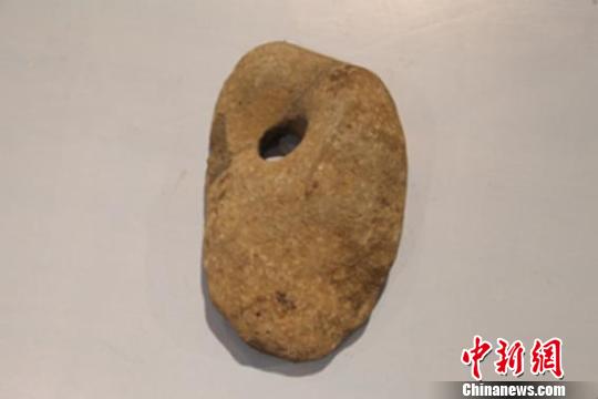 2016年,張福有與長白山池南區(qū)委書記曹樹清又一次來到訥殷古城附近的石制手斧發(fā)現(xiàn)地,采集到一塊穿孔石器。他們認為,該石器表面有磨制痕跡,應(yīng)是人工所為,不是自然形成,很有可能是古代時期的石器。