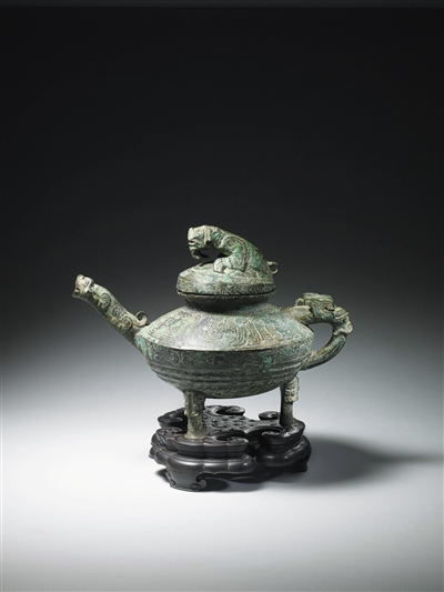 據(jù)拍賣行稱,此“鎣”類器物世上僅存7件,其中5件均收藏在博物館。此次被拍賣的虎鎣,是一件盛水器物,器型比較特別,因三個腿柱不同于常見的圓錐體腿柱,而是圓柱體。且罕見的“老虎”塑像也少見。