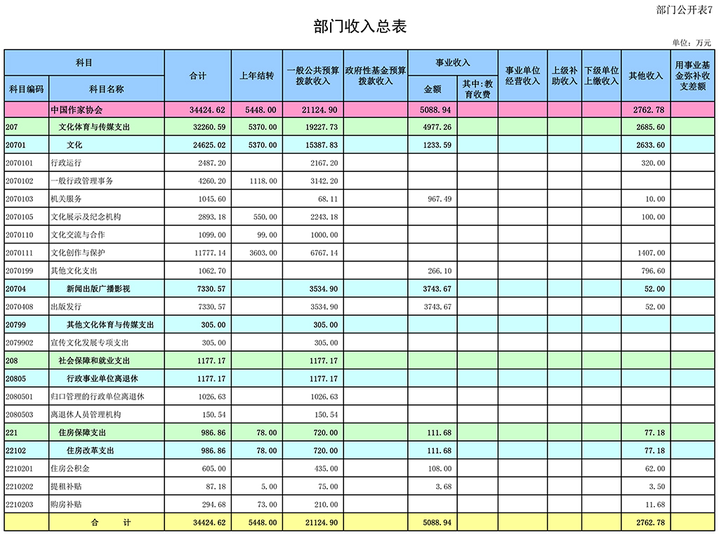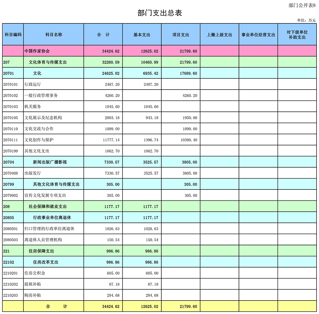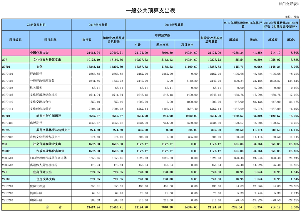 七、文化體育與傳媒(類)文化(款)行政運(yùn)行(項):指中國作協(xié)本級用于保障機(jī)構(gòu)正常運(yùn)行、開展日常工作的基本支出。