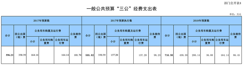 二十四、“三公”經(jīng)費(fèi):納入中央財政預(yù)預(yù)算管理的“三公經(jīng)費(fèi)”,是指中央部門用財政撥款安排的因公出國(境)費(fèi)、公務(wù)用車購置及運(yùn)行費(fèi)和公務(wù)接待費(fèi)。其中,因公出國(境)費(fèi)反映單位公務(wù)出國(境)的住宿費(fèi)、旅費(fèi)、伙食補(bǔ)助費(fèi)、雜費(fèi)、培訓(xùn)費(fèi)等支出;公務(wù)用車購置及運(yùn)行費(fèi)反映單位公務(wù)用車購置費(fèi)及租用費(fèi)、燃料費(fèi)、維修費(fèi)、過路過橋費(fèi)、保險費(fèi)、安全獎勵費(fèi)用等支出;公務(wù)接待費(fèi)反映單位按規(guī)定開支的各類公務(wù)接待(含外賓接待)支出。