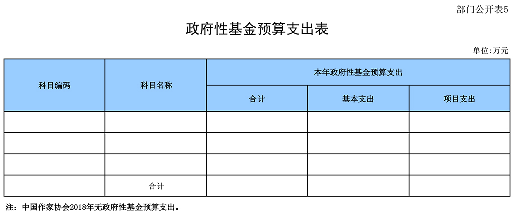 中國作家協(xié)會2018年沒有政府性基金預(yù)算支出。