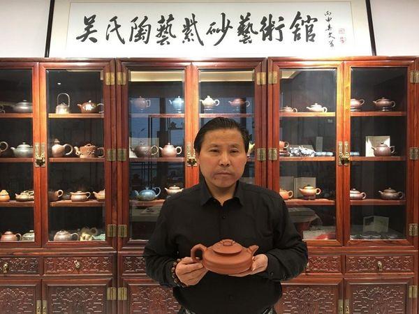 宜興有天土,吳門出陶人。繼陶瓷、紫砂已成國藝。一盈把握,諸子盡在一掬之間,上兌莊老之露、下泡儒佛之泉。禪意不看紅塵事,一捧紫砂釋天機(jī)。在這一系列榮譽(yù)的背后,是吳海龍老師最紫砂藝術(shù)的喜愛,對中國非物質(zhì)文化遺產(chǎn)繼承的責(zé)任心,促使他孜孜不倦,一往無前的去專研,通過各種機(jī)會途徑與紫砂界的大師們合作交流,拓展他的視野和創(chuàng)作靈感。與此同時(shí),他積極走出國門,讓紫砂文化在一帶一路的東風(fēng)下展示出他獨(dú)特的魅力,吸引著國際紫砂藝術(shù)愛好者的目光。