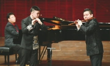“梅蘭竹菊”國樂專場中,戴亞與李樂吹奏《胡旋舞》 胡蕾 攝
