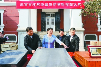 昨日,故宮博物院接受太湖世界文化論壇捐贈的古建筑維修保護所需重要材料——100塊金磚和100萬張金箔。該院院長單霽翔說:“這是今天送給未來的禮物,為紫禁城下一個600年儲備優(yōu)質古建筑維修保護材料?!?/p>