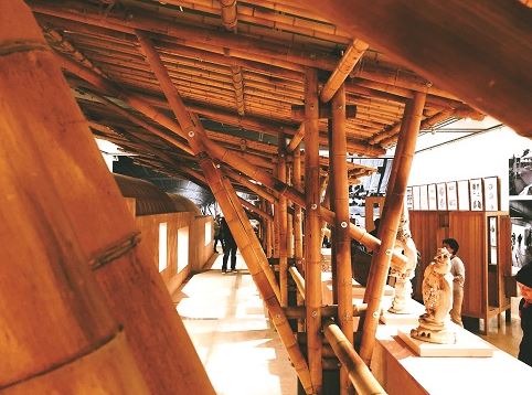 學(xué)院在教學(xué)創(chuàng)作中號(hào)召師生扎根生活,倡導(dǎo)“勞作上手、讀書(shū)養(yǎng)心,像哲人般思考、如工匠般勞作”的理想,就是希望能繼民學(xué)精神,再興鄉(xiāng)土生活,借藝術(shù)讓人民的生活更美好。“我織我在”“本土營(yíng)造”“天工開(kāi)物”所呈現(xiàn)的便是貫徹這一理念的教學(xué)最新現(xiàn)場(chǎng)。在“我織我在”的空間中,數(shù)百條由師者編織的千變?nèi)f化的繩結(jié)里,貫穿著數(shù)組學(xué)生的編織作品,讓觀者體驗(yàn)到“身心發(fā)動(dòng)、情義直觀”的東方藝術(shù)真諦,也感悟到上手的技藝與造物思想的關(guān)聯(lián);“天工開(kāi)物”則向我們展現(xiàn)了陶瓷、漆器、玻璃、首飾等與棲居空間相融相依的手工藝品;“本土營(yíng)造”聚焦于“復(fù)興融通自然、城市、建筑和造園的整體性”之大命題,這個(gè)極具泥土氣息的營(yíng)造現(xiàn)場(chǎng),背后凝聚了大量的鄉(xiāng)土調(diào)查與實(shí)踐摸索。