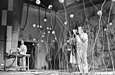 轉(zhuǎn)眼到了1984年,80級的同學想排一部戲來做為畢業(yè)紀念演出,找到牟森來執(zhí)導《課堂作文》。這是西德作家埃爾文·魏克德的作品:老師讓學生們在畢業(yè)前夕以“我如何設(shè)想我的一生”為題寫一篇作文,然而短短二十幾年過后,所有美好的答卷都化做四個字:事與愿違。唯有基里安的答卷除外,因為他壓根沒有寫下自己的夢想,而是交了一首詩,全詩的最后一句便是:“有誰知道,我們走向何處?!?/p>