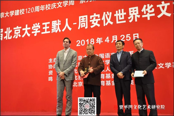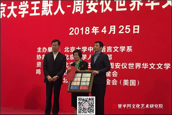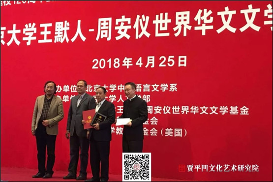 4月25日,為迎接北京大學(xué)建校120周年校慶,首屆“北京大學(xué)王默人-周安儀世界華文文學(xué)獎(jiǎng)”頒獎(jiǎng)典禮在北京大學(xué)英杰交流中心舉行。該獎(jiǎng)項(xiàng)由美國(guó)華裔王默人和周安儀向北京大學(xué)捐資設(shè)立,由北京大學(xué)中文系主辦。中國(guó)作協(xié)副主席賈平凹長(zhǎng)篇小說《極花》、馬來西亞作家黃錦樹短篇小說集《雨》榮獲評(píng)委會(huì)大獎(jiǎng),賈平凹文化藝術(shù)研究院應(yīng)邀參加活動(dòng)。