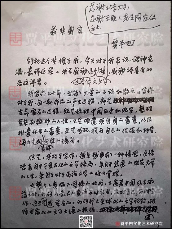 賈平凹發(fā)言手稿