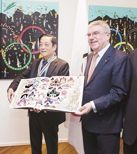 當?shù)貢r間4月24日,中國藝術家韓美林獲“顧拜旦獎”,國際奧委會主席托馬斯·巴赫在瑞士洛桑國際奧委會總部為韓美林頒獎。這是韓美林2015年10月獲得聯(lián)合國教科文組織“和平藝術家”稱號之后,再次獲得國際性殊榮。在頒獎儀式上,韓美林向國際奧委會贈送了他一本珍藏的“奧運手稿”,并發(fā)表了題為《我向世界致青春》的獲獎感言。