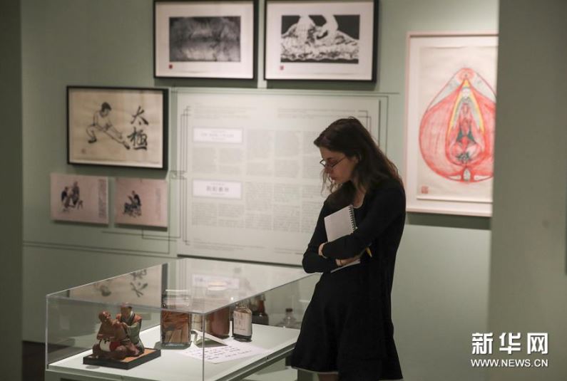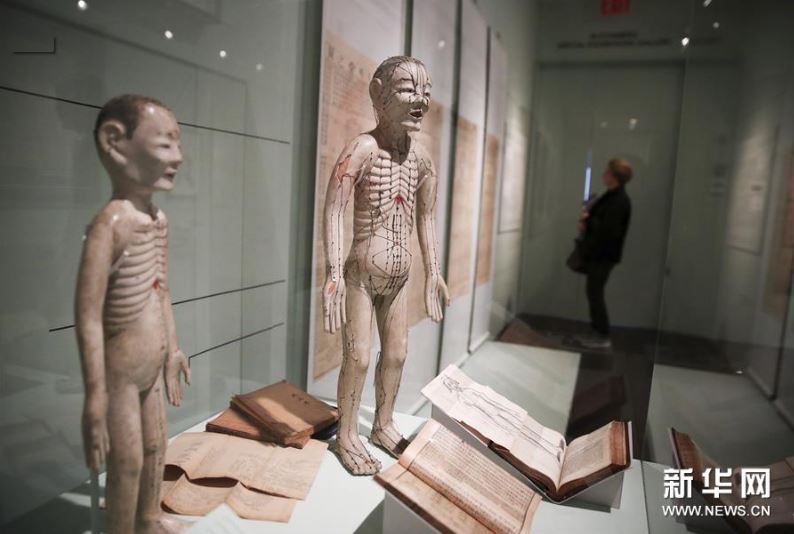 4月25日,在美國紐約華人博物館舉行的“中醫(yī)在美國:理念、人與實踐的融合”主題展媒體預(yù)展上,觀眾觀看展品。美國華人博物館25日首次推出反映中醫(yī)中藥在美發(fā)展歷程的大型展覽。展覽從26日起對公眾開放,并將持續(xù)至9月9日。