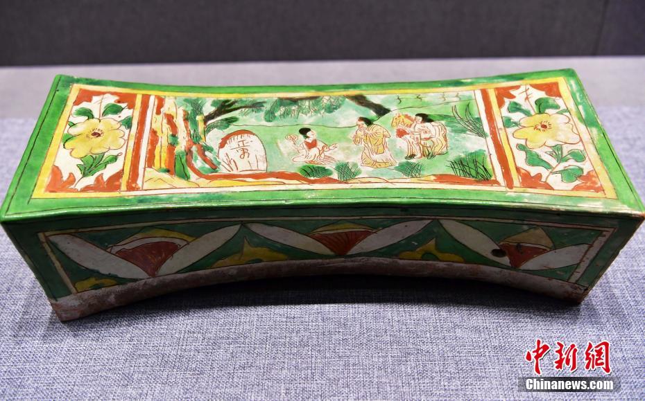 三彩剔劃“正果圖”長(zhǎng)方形枕 翟羽佳 攝