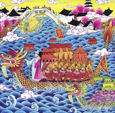 羅店鎮(zhèn)居民以劃龍船為主題創(chuàng)作的羅店民俗畫。(寶山區(qū)羅店鎮(zhèn)供圖)