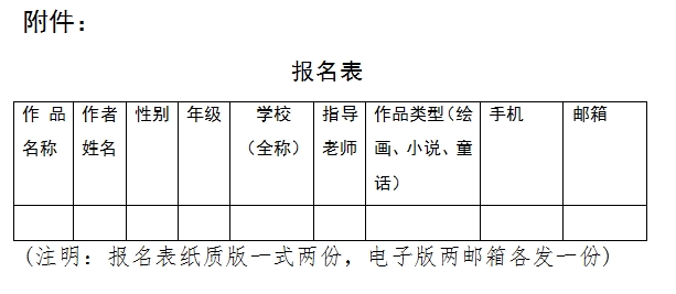 2. 小說(shuō)及童話電子版作品和報(bào)名表發(fā)送至指定郵箱即可。郵件名稱統(tǒng)一為“作品名稱-作文-參賽(個(gè)人姓名)”。