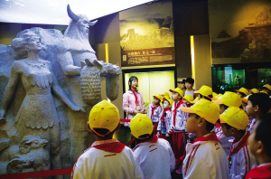 小講解員高夢熙在北川羌族民俗博物館為東辰二小的同學(xué)們介紹羌族始祖——炎帝。 北川羌族民俗博物館供圖