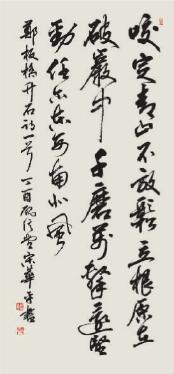當(dāng)代書法創(chuàng)作觀的發(fā)展,需要當(dāng)代書法家具有開闊的藝術(shù)視野,將書法置放在博大精深的中國(guó)文化傳統(tǒng)的大背景之下,將歷史意識(shí)、個(gè)人情感與時(shí)代審美有機(jī)結(jié)合,以個(gè)體生命的情懷感悟書法,以書法自信和文化自覺,與當(dāng)下國(guó)人的精神氣質(zhì)和當(dāng)下的現(xiàn)實(shí)生活恰切地、自然地糅合在一起。數(shù)十年的硯田辛勤耕耘,使宋華平的書法審美內(nèi)蘊(yùn)更加豐富,其行草書將晉人之韻、唐人之法、王鐸之骨盡挾筆端,以積極有為的創(chuàng)作激情投身于當(dāng)代行草書創(chuàng)作,進(jìn)而實(shí)現(xiàn)當(dāng)代書法的歷史擔(dān)當(dāng)。