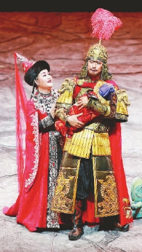 劇中的反面角色也非常有光彩,空吾爾巴依的野心和梟雄本色被男中音歌唱家耿哲演繹得非常到位,讓人覺得這也是一個英雄,一個為了自己的民族拓展生存空間而奮斗的英雄。坎巧繞是屬于內部的反面人物,但是這個眾人眼中的惡人在男高音歌唱家李想的成功演繹下,演出了一種別樣的英雄況味,成為第四幕最光彩照人的角色:他有野心,但是他也想繼承瑪納斯,也想帶領民族走向繁盛。應該說,他是驕傲的,對賽麥臺依的背叛更多源于對命運的抗爭。額爾奇吾勒作為一位史詩的傳承者,更多體現(xiàn)出來的是“忠” :對瑪納斯的忠誠,對卡妮凱和賽麥臺依的忠誠與守護,再沒有誰比男高音歌唱家劉怡然更適合這個角色了。