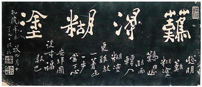 在這種思想下,鄭板橋奮發(fā)攻書(shū),創(chuàng)出“怒不同人”的“六分半書(shū)”?!胺謺?shū)”即隸書(shū),又稱為“八分書(shū)”。鄭板橋的分書(shū),是以隸書(shū)筆法形體摻入行楷,使書(shū)體介于隸楷之間,且隸多于楷,故稱“六分半書(shū)”,意即減八分之意。加上他以畫(huà)蘭竹之筆法入書(shū),形成了鄭板橋別具一格的書(shū)體,被后人稱作“鄭板橋體”。