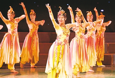 5月16日,“龜茲樂舞的圖像表達與教學呈現(xiàn)”學術成果展演在新疆藝術學院舉行。據(jù)介紹,樂舞研究小組進行了多次田野調研,試圖讓遺存在史料、壁畫上的龜茲樂舞“活起來”。圖為學生在表演“編創(chuàng)作品”部分中的《菱格尋香》。