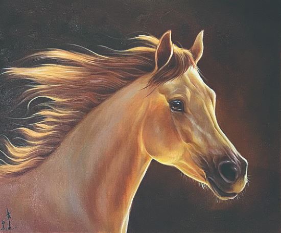 與學(xué)院派不同,廣亮的油畫作品有著規(guī)范之外的風(fēng)格和靈氣,帶著鮮明的個性標(biāo)簽。隨著個人繪畫風(fēng)格的漸趨成熟,廣亮的駿馬畫既有西洋畫法重結(jié)構(gòu)的嚴(yán)謹(jǐn),更有傳統(tǒng)國畫重神韻的靈性。廣亮以特寫的手法畫馬,使畫面力度倍增,以動為主,虛實相生。擯棄多余的襯景,把馬置于浩瀚的宇宙時空中,在氣勢逼人、排山倒海的視覺震撼下,形成畫面張力,讓馬最大限度地騰挪跳躍于天地之間。這樣既突出了主題物象,又使畫面開闊深遠(yuǎn),給人以無限遐想。2016年7月9日和2017年3月24日,在眾多臺灣媒體的見證下,黃廣亮的駿馬油畫作品《追夢》和《報捷》被時任中國國民黨主席洪秀柱鄭重收藏于臺北。全國百余家媒體追蹤報道了此事,廣亮不僅成為現(xiàn)象級畫家,還促進(jìn)了兩岸文化交流,受到全國政協(xié)領(lǐng)導(dǎo)表揚,榮獲文化使者的美譽。